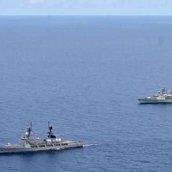 【美菲加澳进行联合演习,菲军方:有3艘中国海军护卫舰“围观”】美国海军方面在8月8日报道,美国,菲律宾,加拿大,澳大利亚四国海军,在8月7日,南海海域举行了联合军演,美国,菲律宾,加拿大,澳大利亚四国海军出动了4艘战舰。中国3艘海军舰艇,包括2艘056型护卫舰,1艘054A型护卫舰在附近进行了对抗性演习。